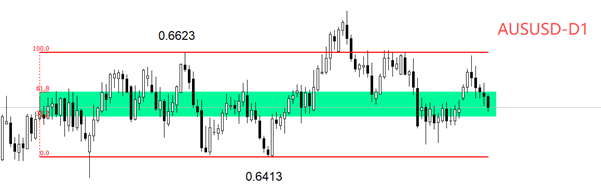 技术角度看,日线级别,AUDUSD处于中期横盘状态,上限0.6623,下限0.6413,目前没有出现震荡结构被打破的迹象。10月29日,AUDUSD触及震荡区间上限,随后开启跌势,连续收出五根阴线。最新市价处于震荡区间的0.382~0.618之间,也就是中枢区域。短线走势有突破图中绿色中枢下沿,并向震荡区间下限0.6413波动的可能。